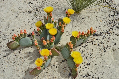 Description: Spineless bluish gray pads, forming low sprawling mats. Flowers pure yellow, fading to light orange.