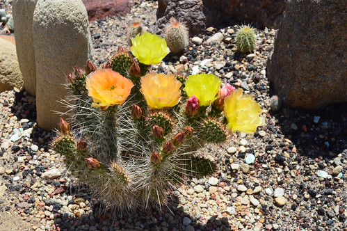 Description: Far northern intermediate population, forming semi erect rounded mounds in age with flexible spines. Yellow flowers fading to orangey colors.