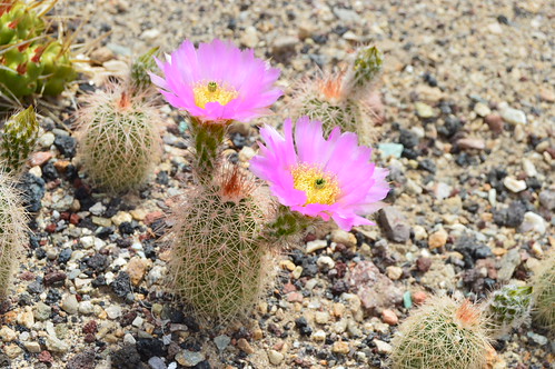 Description: Spines highly variable in this population, mostly dark to light orange with mixed white or black. Flowers variably pink.